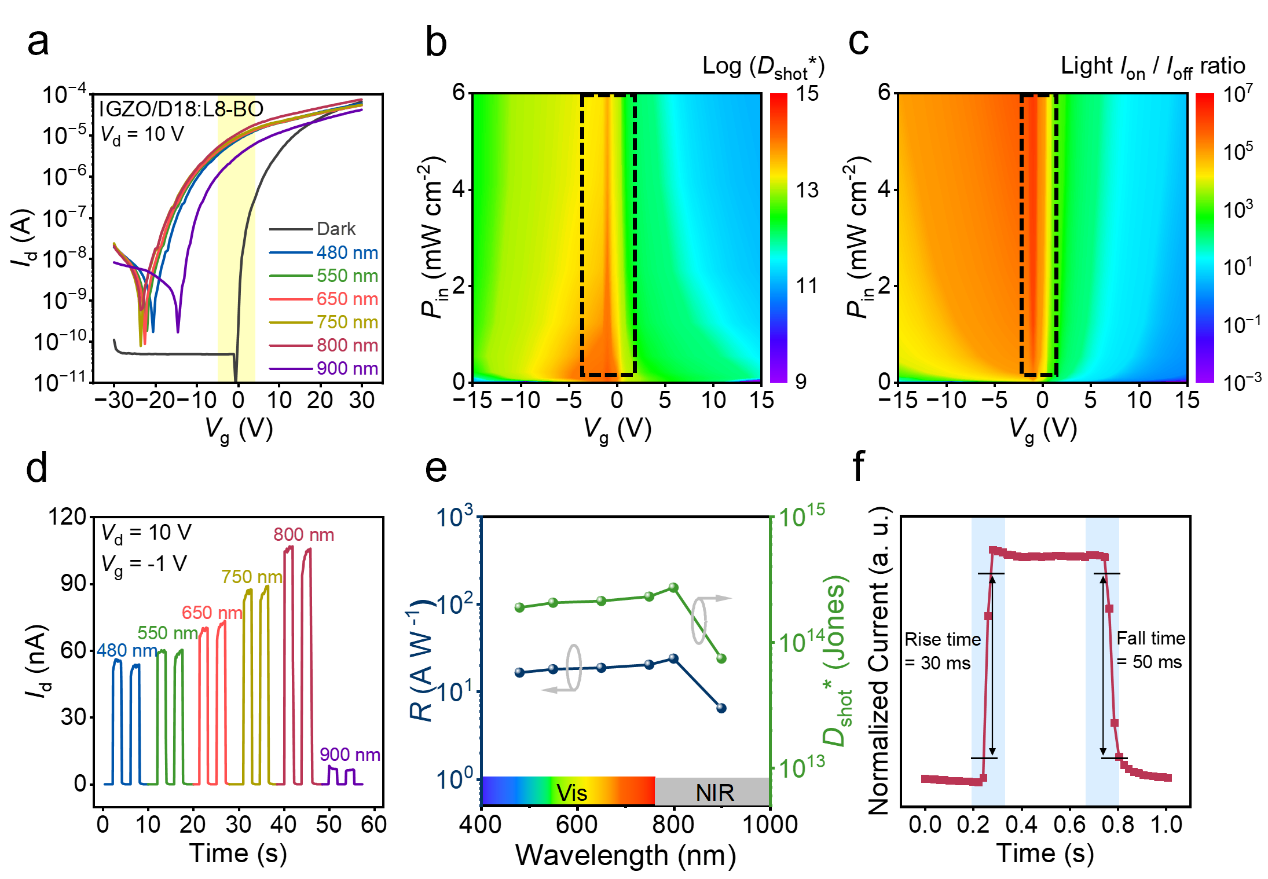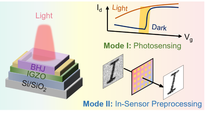 图1. IGZO/D18:L8-BO HPT的器件结构和双模功能